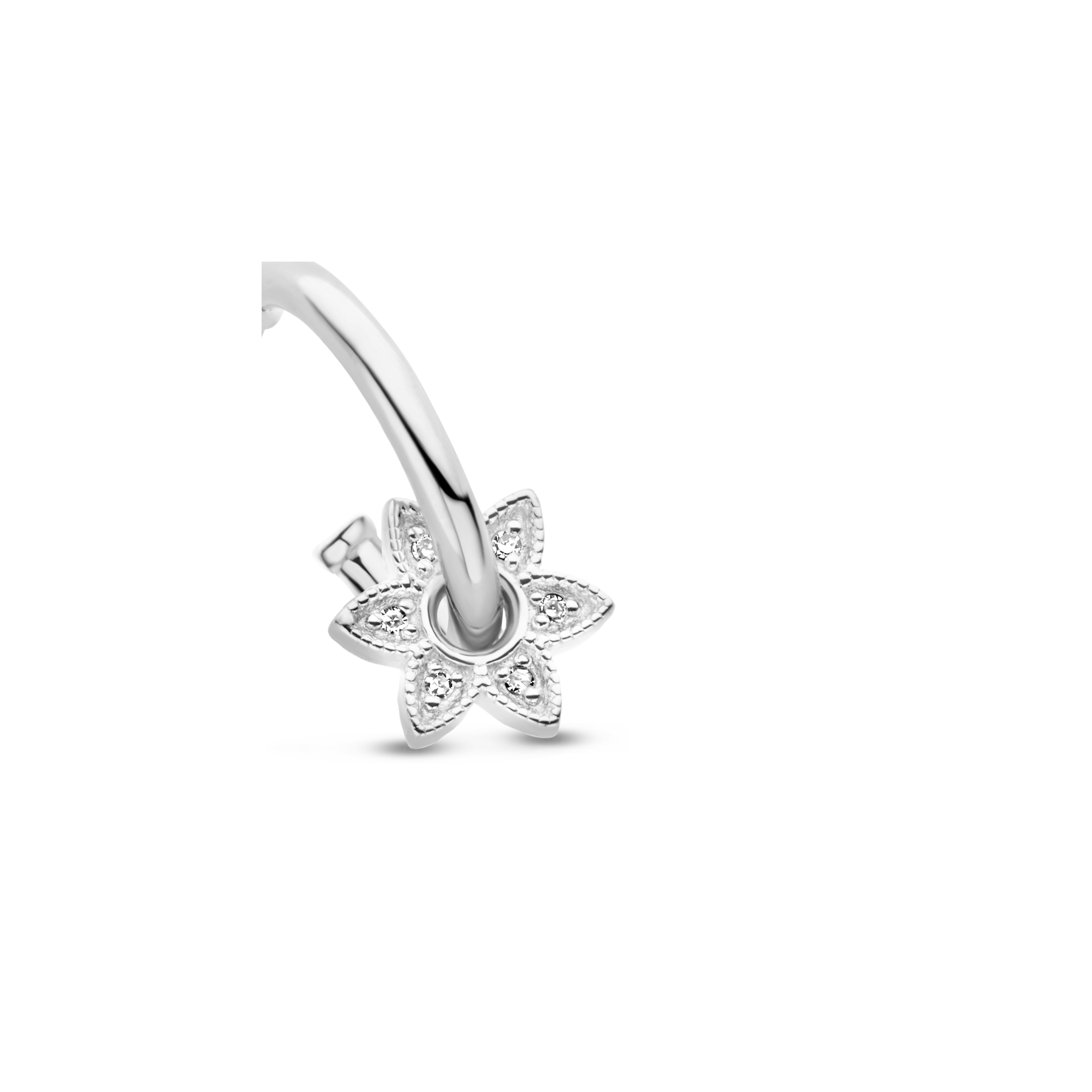 The most adorable bluebell flower charm, its petals covered in natural diamonds, twirling and swirling on a twinkling single hoop.STYLING TIP | Style with our matching Willow single hoop for a fresh and lively look.