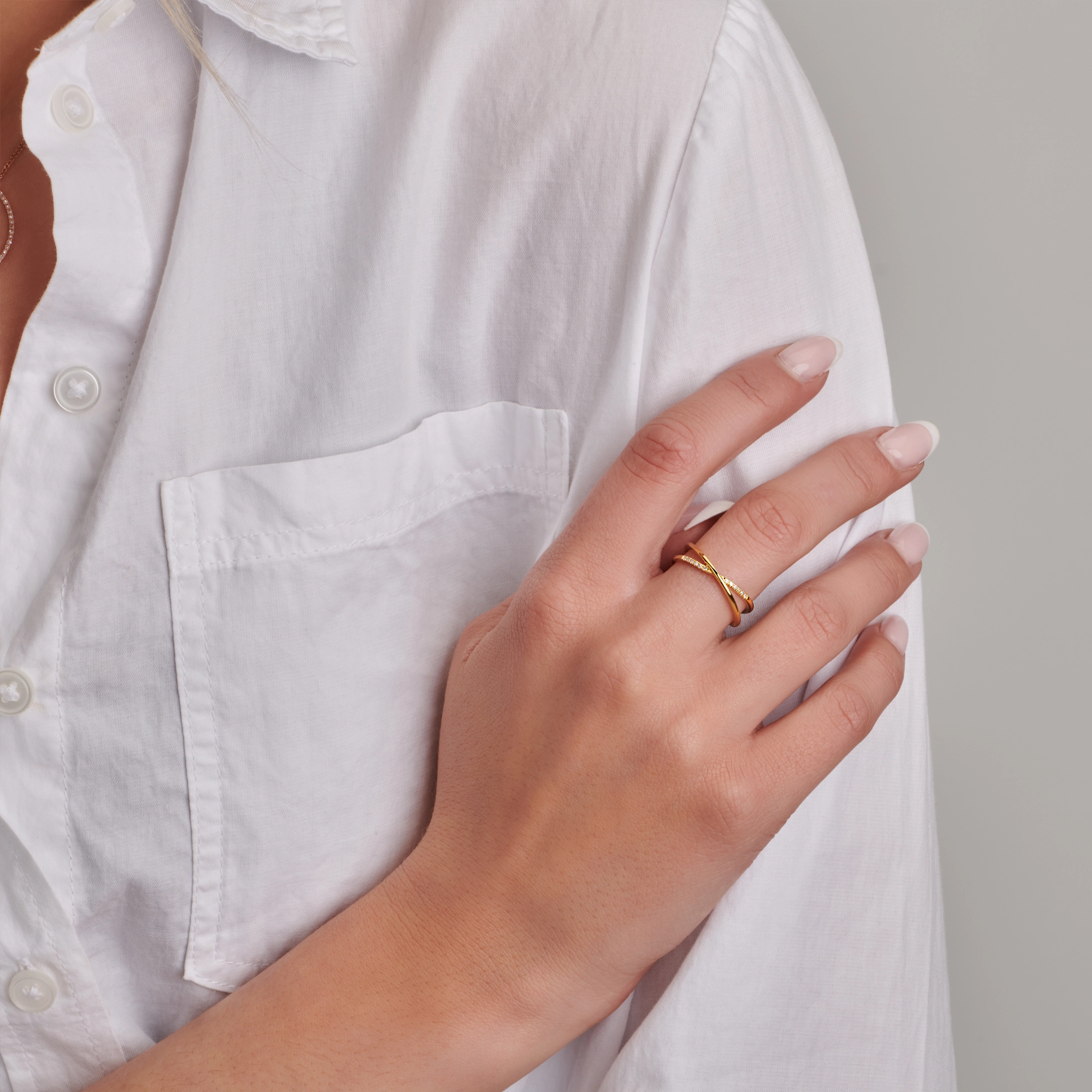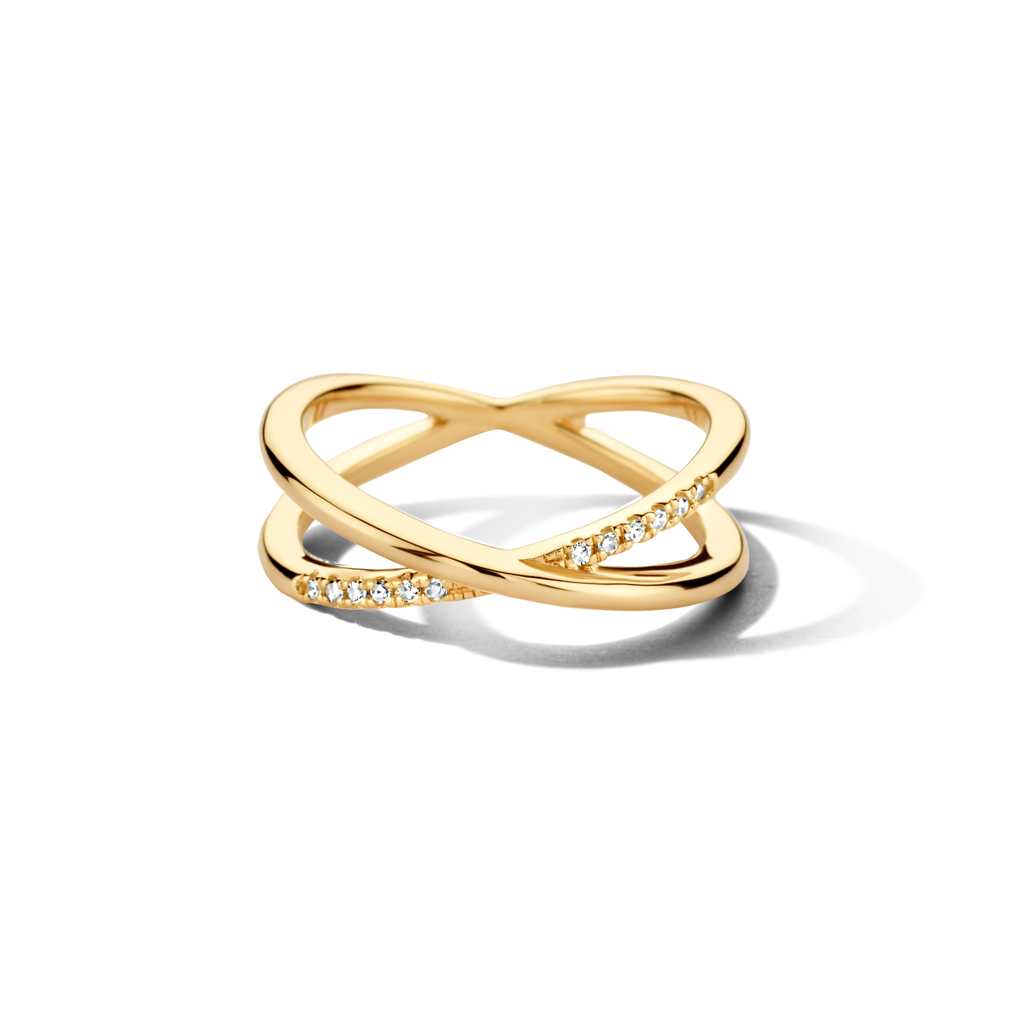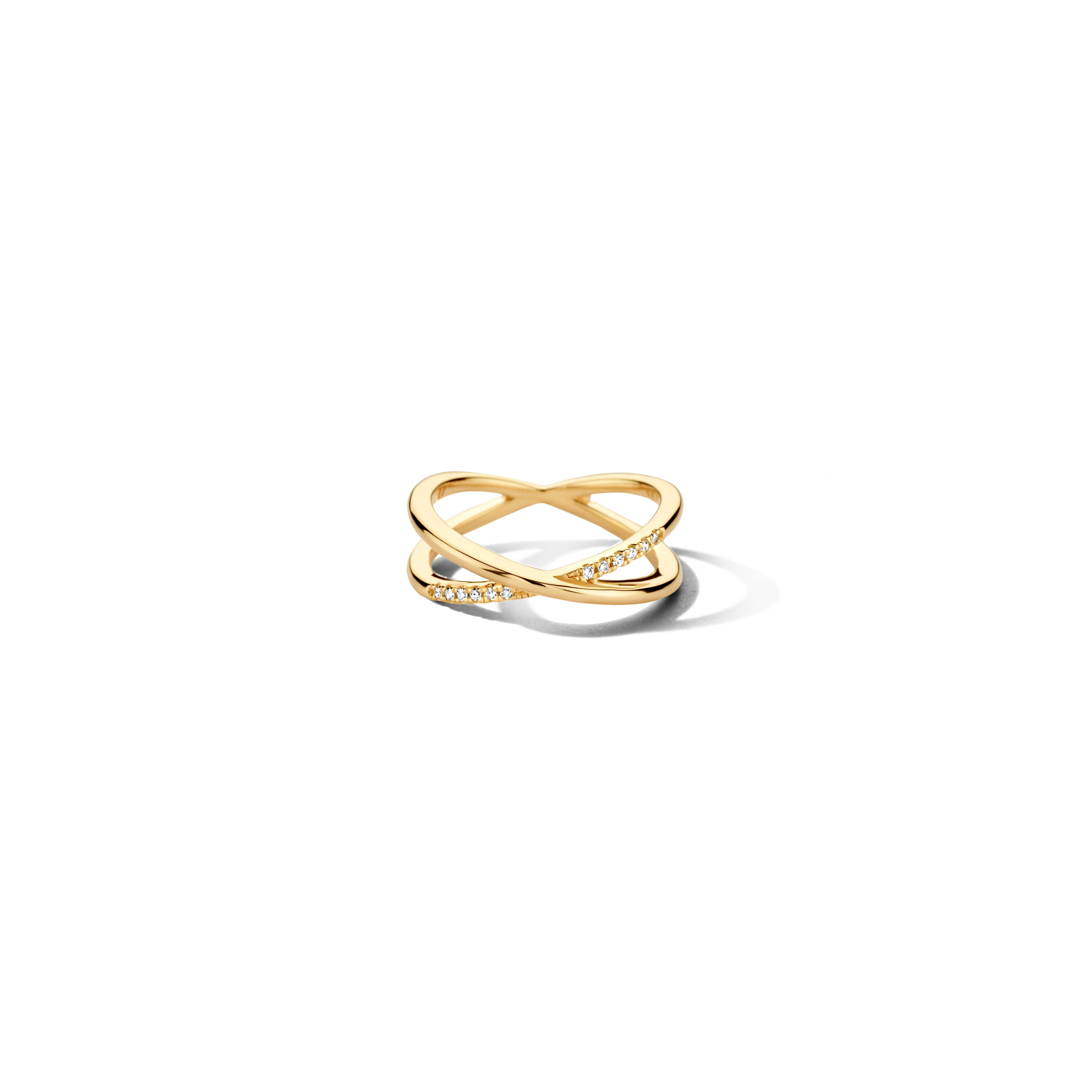 A timeless series of re-interpretations of a classic pavé band: our Crossover ring puts 10x pure diamonds beautifully on display in a crossover design. Easy to pair with our Braided ring, Double Cross ring or Endless series.