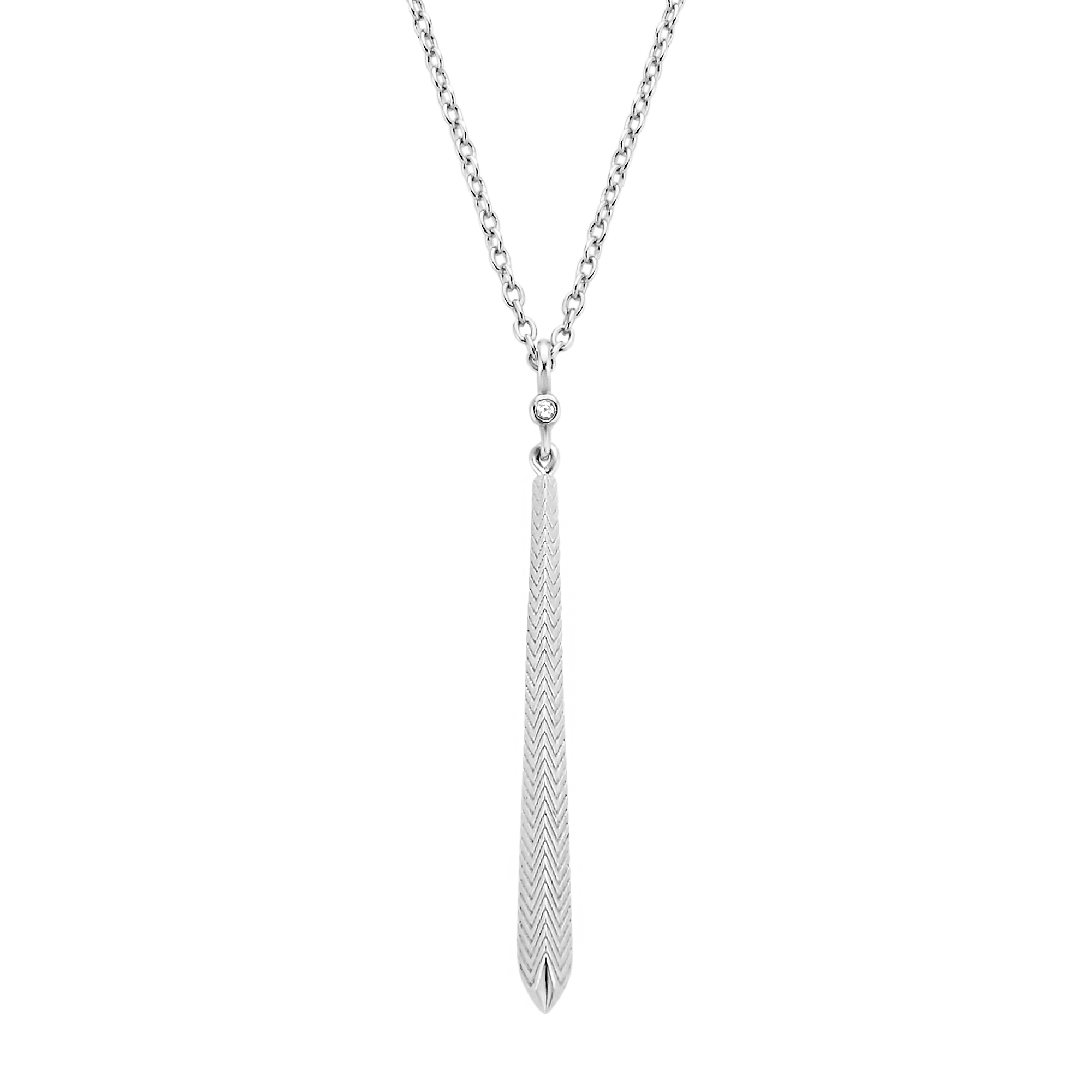 Inspired by the architectural glory of the Amalfi Duomo (*cathedral), this pendant necklace carries a single diamond and nifty herringbone patterned ornament - blazing in the soft summer breeze.