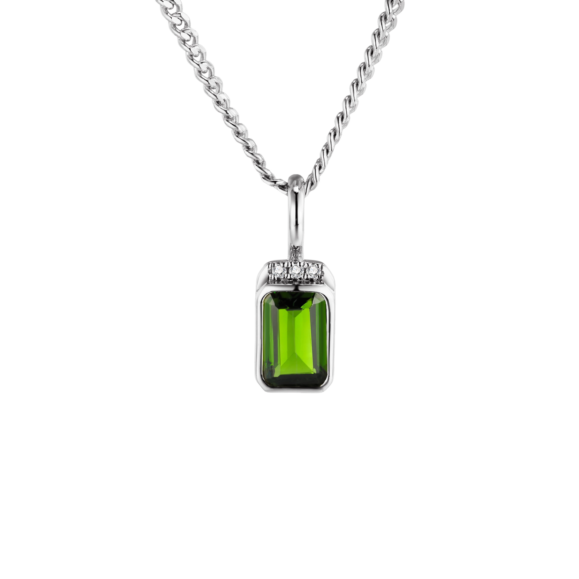 Nothing exudes ‘timeless elegance’ more than our vintage-inspired Noëlle set. Featuring a mesmerizing green Diopside gemstone in a refined octagon setting and 3x natural diamonds, this necklace effortlessly evokes the charm and sophistication of a bygone era into modern everyday life. Diopside is known as a gentle uplifting mood booster, promoting emotional balance and calmness, opening up the heart.