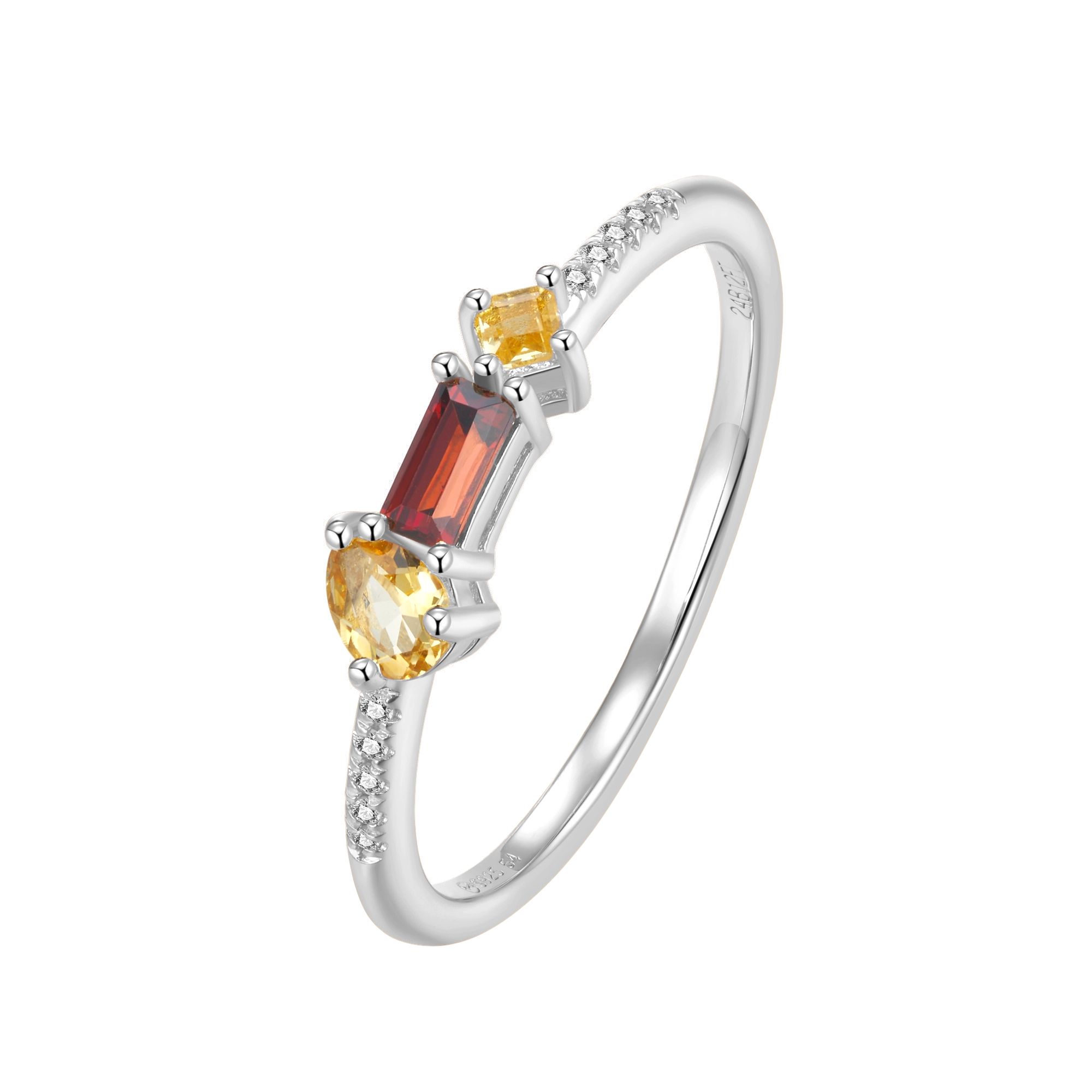 Featuring a smoldering cluster of garnet and citrine gemstones in a playful variety of cuts — handset on a diamond (10x) band, this design captures the glowing intensity of a crackling flame. With its radiant hues and fierce sparkle, it truly is the ring of fire.