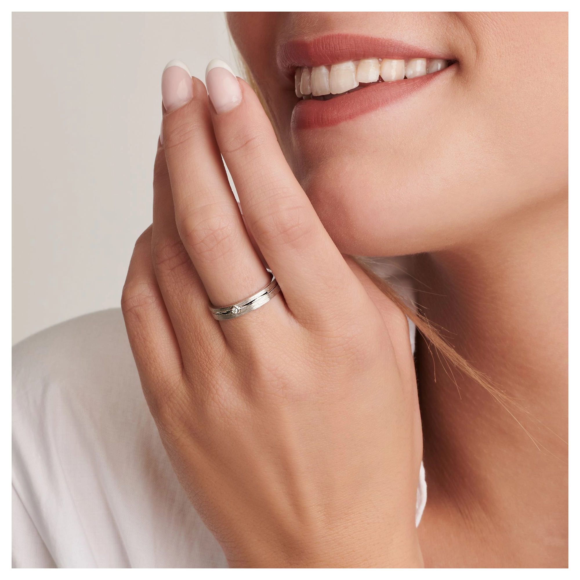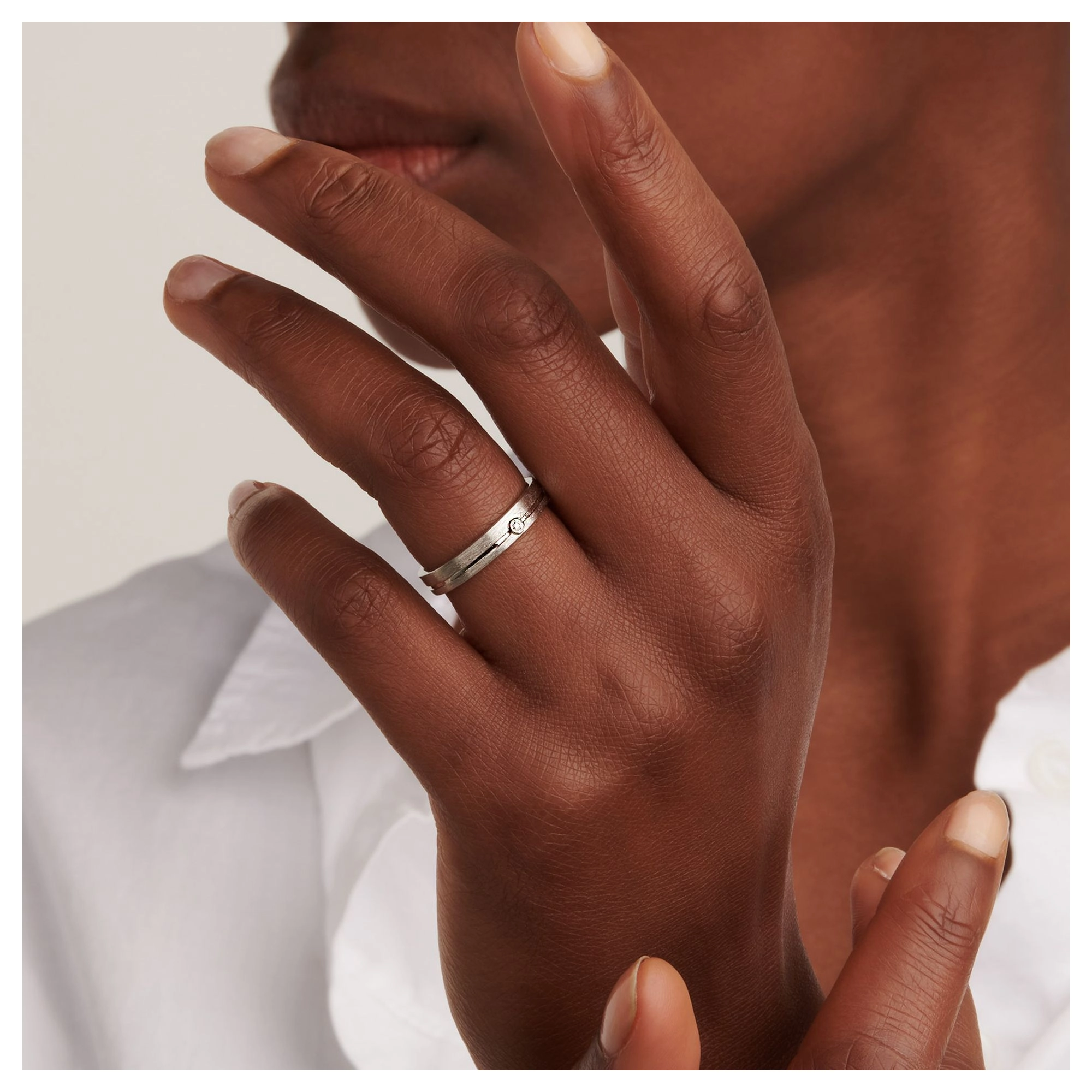 This delightful wedding ring with a precious diamond in the centre is a more intimate way of expressing your profound love. A polished line is engraved along the entire band of this brushed ring. Like your significant other, you will cherish and treasure this gorgeous piece forever. Are you looking for a subtle way to make your rings more unique? Customize your rings with our free engraving service.